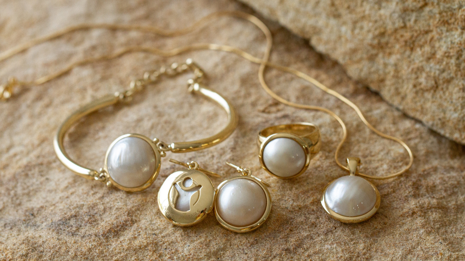 The Save the Children collection showcases a curated select of half-pearl or Mabe pearl jewellery engraved with the Save the Children motif. This includes pendants, rings, hook earrings, pearl studs, bracelets, cufflinks set in solid gold designs.