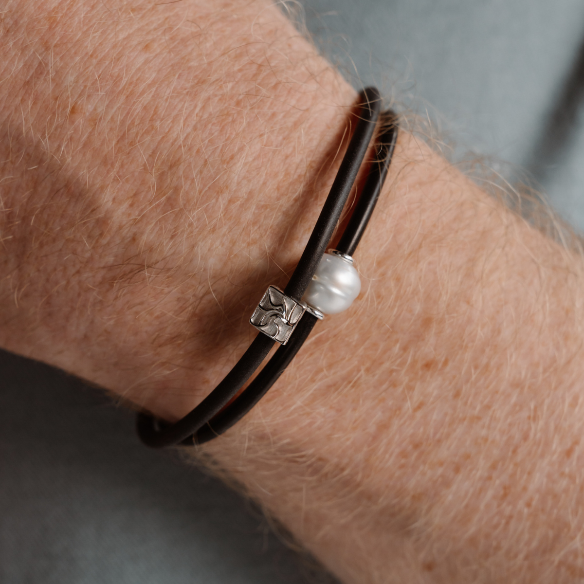 Steven wears a Neoprene Pearl Bracelet stacked with a Neoprene Seagrass Bracelet.