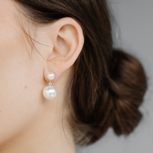 Provenance 耳环 短款澳大利亚南海小天鹅湾 2 X 圆形 11.5 毫米 A3 和澳大利亚 Akoya 碎湾 2 X 7 毫米 AAA