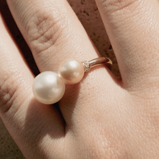 Provenance 开口戒指澳大利亚南海 Cygnet Bay 圆形 10 毫米 A3 和澳大利亚 Akoya Broken Bay 7 毫米 AAA