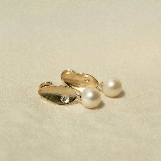 Dew Drop Studs Australian Akoya Broken Bay 6.5mm AAA Diamonds 2=0.05ct H/SI 9ct Yellow Gold